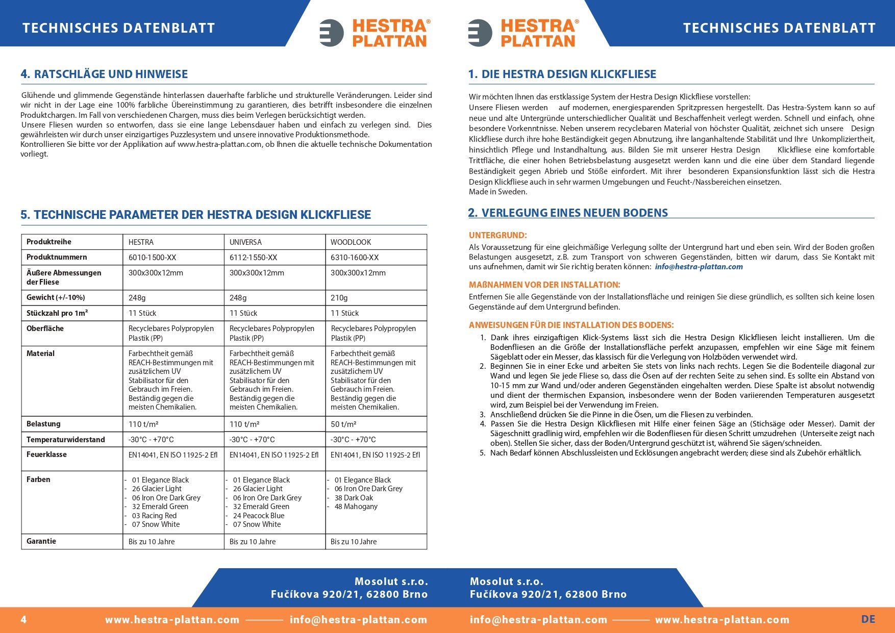 HESTRA PLATTAN TECHNISCHES DATENBLATT